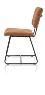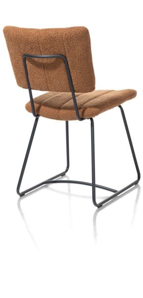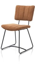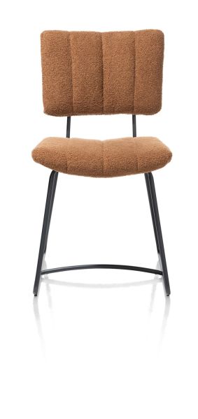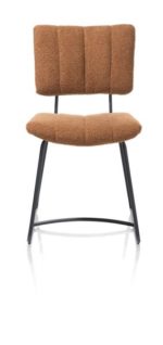 Wat een fijne, moderne stoel is deze Marcel! De stoel heeft een zwart metalen onderstel, opvallende vertikale stiksels en is uitgevoerd in de superzachte boucléstof Avicci, die gemaakt is van 100% gerecyclede petflessen. Het frame heeft ook een handige handgreep achteraan, waradoor je de stoel makkelijk kunt verplaatsen. Deze stoel is uitgevoerd in de kleur goudbruin en meet 47x85x60cm (bxhxd). De zitting is 50cm hoog. Er is ook een barstoel-versie van deze stoel beschikbaar.