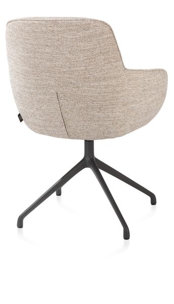 Laat je verrassen door de perfecte balans tussen stijl en comfort met armstoel Mateo van Henders & Hazel. Deze stijlvolle eetkamerstoel straalt elegantie uit en voelt zich thuis in zowel moderne als klassieke interieurs. Het slanke design, de verfijnde stiksels en de zachte bekleding springen meteen in het oog en nodigen uit tot ontspannen zitten. Dankzij de ergonomisch gevormde rug en zitting geniet je bovendien van langdurig zitcomfort – ideaal voor lange diners of gezellige avonden aan tafel.Mateo is niet zomaar een stoel, het is een uitnodiging om te blijven zitten en te genieten. Je stelt hem volledig samen naar jouw smaak: kies uit een brede selectie stoffen en kleuren, met of zonder armleuningen, en bepaal het onderstel dat bij jou past – klassiek met vier poten, praktisch op wieltjes of handig draaibaar. Deze uitvoering is afgewerkt met een draaipoot in graphiet en bekleed met de stof Bellini in een zachte crèmekleur – een elegante toevoeging aan elke eetruimte.