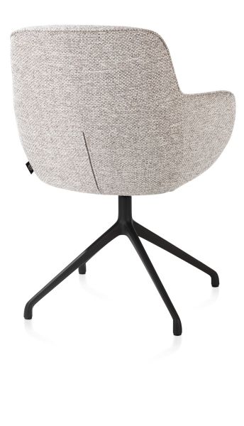 Stoel Mateo combineert moeiteloos verfijnde elegantie met optimaal zitcomfort. Dankzij het slanke silhouet, de verfijnde stiksels en de zachte bekleding is deze armstoel een stijlvolle toevoeging aan elke eethoek. De ergonomisch gevormde rugleuning en zitting zorgen ervoor dat je ook tijdens lange etentjes ontspannen blijft zitten.Met zijn tijdloze design past Mateo perfect in uiteenlopende interieurstijlen – van strak en eigentijds tot warm en klassiek. Je hebt keuze uit een breed scala aan bekledingen en kleuren, en kunt het onderstel afstemmen op je wensen: vast, met of zonder wieltjes, of een draaibare variant voor extra gemak.Deze uitvoering is afgewerkt met een draaipoot in rough off black en bekleed met de stof Bellini in kiezel – een smaakvolle combinatie van subtiele luxe en een stoere uitstraling.