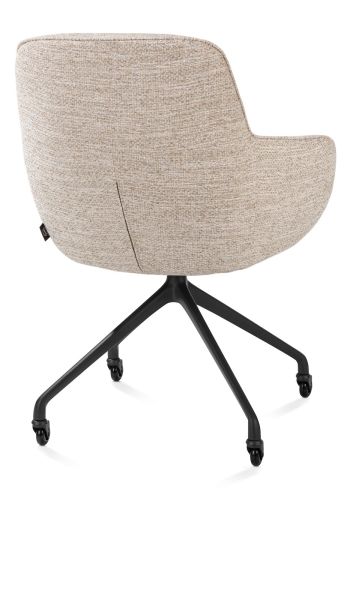 Ontdek de perfecte mix van comfort en stijl met armstoel Mateo van Henders & Hazel. Deze elegante eetkamerstoel straalt verfijning uit en past naadloos in zowel moderne als klassieke interieurs. Opvallend zijn het slanke silhouet, de fijne stikdetails en de zachte bekleding die meteen uitnodigt tot zitten. Maar Mateo is niet alleen mooi om naar te kijken – dankzij de ergonomisch gevormde rugleuning en zitting zit je ook urenlang comfortabel. Ideaal voor lange diners of gezellige momenten aan tafel.Mateo is meer dan zomaar een stoel: het is een plek om tot rust te komen. Je kunt hem volledig personaliseren: kies uit verschillende stoffen en kleuren, met of zonder armleuningen, en selecteer het onderstel dat bij jouw stijl past – met vier poten, op wieltjes of draaibaar. Deze uitvoering is voorzien van een draaipoot op wieltjes in rough off black en bekleed met de stof Bellini in een zachte crème tint – een subtiele blikvanger voor elke eetruimte.
