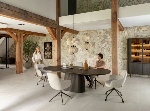 Armstoel Mateo van Henders & Hazel biedt de perfecte mix van comfort en stijl. Met zijn elegante vormgeving voegt hij moeiteloos een vleugje klasse toe aan elk interieur – of je nu gaat voor modern en strak of eerder warm en tijdloos. Het slanke silhouet, de verfijnde stiksels en de zachte, luxueuze bekleding zorgen voor een uitnodigende uitstraling en ultiem zitcomfort.Dankzij de ergonomisch gevormde rug en zitting zit je ook tijdens lange diners heerlijk ontspannen. Mateo is meer dan zomaar een stoel – het is een stijlvolle plek om te genieten van elk moment aan tafel.Je stelt Mateo volledig naar wens samen: kies uit een ruim aanbod aan stoffen, kleuren, armleuningen en onderstellen – van vaste poten tot wieltjes of een draaivoet. Deze variant is uitgevoerd met een draaipoot op wielen. Een subtiele blikvanger die elegantie en comfort samenbrengt in je eetkamer.