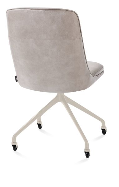 Mateo is meer dan zomaar een stoel: het is een stijlvolle keuze voor wie houdt van harmonie en comfort. De uitvoering met armleuningen en bekleding in Pala-stof straalt luxe uit, zeker in de zachte tinten lichtgrijs of antraciet. Het crèmekleurige onderstel brengt licht in de ruimte en zorgt voor een zachte, elegante basis. Kies jouw favoriete onderstel – vast, met wieltjes of draaibaar – en maak van Mateo dé blikvanger aan je eettafel.