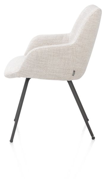 Droom je van een moderne armstoel? Kijk dan eens naar armstoel MATS. Met haar crèmekleurige bekleding en grafietkleurige poten komt deze stoel prachtig tot zijn recht in elk interieur. MATS is geliefd vanwege zijn mooie ronde vormen. De metalen poten en zachte bekleding in stof Luton, maken de stoel helemaal van nu. De comfortabele zit en armleuningen zorgen ervoor dat je in MATS uren kunt tafelen. Je schuift de stoel makkelijk onder de tafel. Qua kleur, bekleding en onderstel is hij verkrijgbaar in verschillende uitvoeringen.