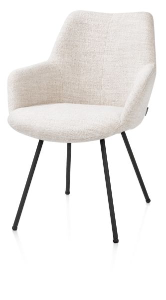 Ben je op zoek naar een moderne armstoel, dan is armstoel MATS de ideale stoel voor jou. Met haar crèmekleurige bekleding en rough off black poten past deze stoel in elk interieur. MATS heeft mooie ronde vormen. De metalen poten en zachte bekleding in stof Luton, geven de stoel een trendy look. Dankzij de comfortabele armleuningen en heerlijke zit, leent MATS zich om uren te tafelen. Hij is makkelijk onder de tafel te schuiven en verkrijgbaar in verschillende uitvoeringen qua kleur, bekleding en onderstel.