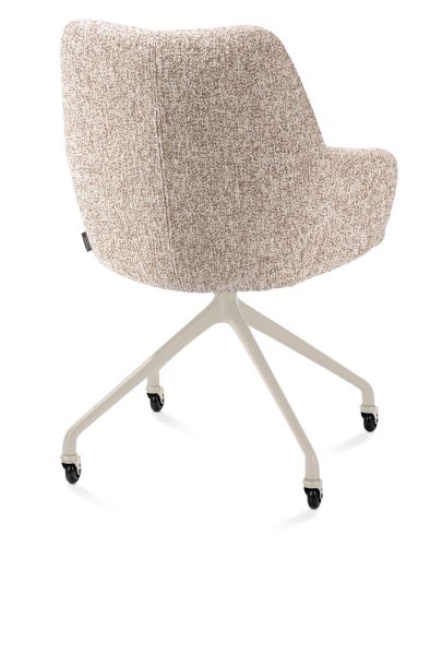 De MATS armstoel in koperkleur brengt warmte én gebruiksgemak samen. De stoel is bekleed met de aaibare stof Luton. Het aluminium frame in crèmekleur is voorzien van wieltjes, waardoor je de stoel moeiteloos verplaatst; ideaal voor dagelijks gebruik of flexibel wonen. Dankzij de ronde vormen, comfortabele armleuningen en ruime zitting is MATS perfect voor lange diners of ontspannen momenten. Het frisse frame geeft de stoel een moderne twist en laat de warme bekleding extra mooi uitkomen. Armstoel MATS is verkrijgbaar in diverse varianten.