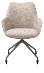 Maak kennis met MATS, een stijlvolle armstoel waarmee je letterlijk alle kanten op kunt. Hij is uitgevoerd in een combi van de cognackleurige stof Pala + de koperkleurige stof Luton. MATS is praktisch vanwege zijn wieltjes en stijlvol dankzij zijn mooie ronde vormen. De armstoel heeft een aluminium frame in de kleur grafiet, een fijne zit en armleuningen die hem extra comfortabel maken. Zowel qua kleur als bekleding en onderstel is MATS verkrijgbaar in diverse uitvoeringen. Zie jij jezelf al avonden lang tafelen op deze armstoel?