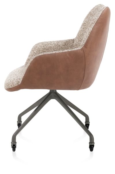 XOOON Mats, armstoel aluminium frame wielen graphiet - combi Pala cognac + Luton koper