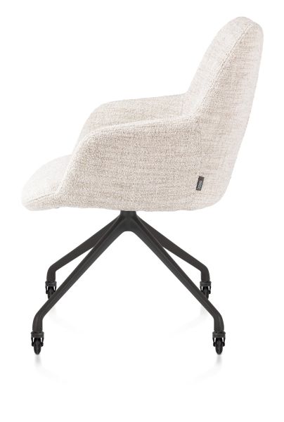 Is jouw interieur klaar voor een armstoel die lekker praktisch en stijlvol tegelijk is? Maak kennis met MATS, een moderne armstoel op wielen. De armstoel is bekleed met de crèmekleurige stof Luton en heeft een aluminium frame in de kleur rough off black. MATS zit heerlijk! Hij staat bekend om zijn ronde vormen en leent zich mede dankzij de armleuningen uitstekend om uren te tafelen. Kijk ook eens naar alle andere uitvoeringen waarin MATS verkrijgbaar is, zowel qua kleur als bekleding en onderstel.