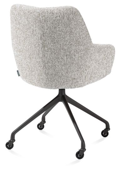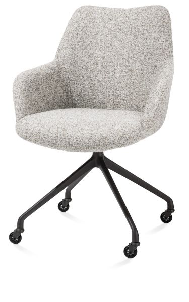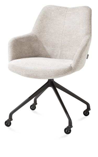 Deze stijlvolle armstoel MATS rol je er gemakkelijk even bij. Hij staat namelijk op een grafietkleurige, aluminium kruispoot met wielen. Kies zelf je bekleding in stof uit onze selected choices collectie.Naar wens is MATS ook verkrijgbaar met een frame dat 360° draaibaar is. Ook is een versie verkijgbaar met een metalen 4-poot.