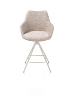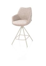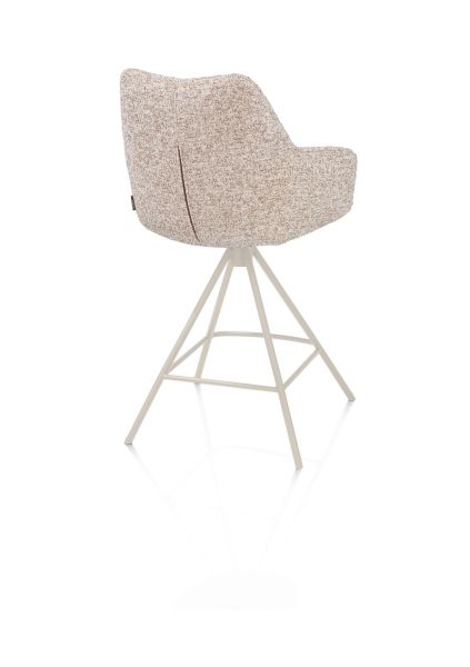 Deze MATS barstoel is uitgevoerd met een metalen 4-poot onderstel in de kleur crème. De draaifunctie maakt de zitting 360 graden draaibaar, wat zorgt voor praktisch gebruik aan de bar of het keukeneiland. De bekleding in de stof Luton in de warme kleur koper voelt zacht en aaibaar aan en zorgt voor een stijlvol contrast.