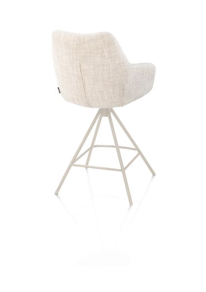 Deze MATS barstoel heeft een metalen 4-poot onderstel in de kleur crème. Dankzij de draaifunctie is de zitting 360 graden draaibaar en schuif je makkelijk aan. De zitting is bekleed met de stof Luton in de kleur crème. De zachte stof met bouclé look versterkt de lichte en rustige uitstraling.