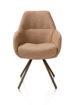 Breng warmte en karakter in je interieur met armstoel MAVIS in stof cloudy oker. Deze comfortabele stoel is 180° draaibaar en combineert een trendy design met optimaal comfort. De luxueuze boucléstof voelt zacht aan, en de pocketvering zorgt voor een fijne zit. Ideaal lange avonden aan tafel. Het steel brown frame geeft een stoere touch, terwijl de automatische terugdraaifunctie zorgt voor gebruiksgemak. MAVIS is ook verkrijgbaar in de kleuren beige en olive.