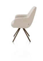 Op zoek naar een moderne eetkamerstoel die comfort en design combineert? Armstoel MAVIS in stof Cloudy beige kleur is een stijlvolle keuze. Deze zachte boucléstof geeft de stoel een luxe uitstraling, terwijl de pocketvering zorgt voor heerlijk zitcomfort tijdens lange etentjes. Het metalen frame in de kleur steel brown is 180° draaibaar én heeft een terugdraaifunctie. Dat maakt deze comfortabele armstoel extra praktisch. MAVIS is ook verkrijgbaar in de kleuren oker en olive.