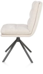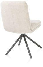 Deze eetkamerstoel Mia heeft een draaibaar centraal onderstel in de kleur grafiet én een uiterst comfortabele zitting. Ook hebben de stoelen een automatische terugdraaifunctie. De stoel is uitgevoerd in stof Livigno, chenille met een zichtbare vleug. Deze stoel is uitgevoerd in de kleur crème. Ook leuk aan deze stoelen: de horizontale stiknaden die in de rug en zitting doorlopen. De stoelen hebben een zitting van 50cm hoog en meten in totaal 90cm hoog.