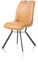 Hij zit heerlijk, hij staat super! Eetkamerstoel Michiel combineert de looks met een aangenaam zitcomfort. Deze variant van Michiel staat op een zwart metalen onderstel met vier stoelpoten. Het design van de stoelpoten geeft de stoel een moderne uitstraling. De kuip is bekleed met de stof Pala in de kleur okergeel. Pala is een onderhoudsvriendelijke leder-lookalike. Ontdek de verschillende frames van de eetkamerstoel en ontdek jouw favoriet!