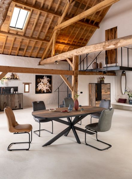 Henders & Hazel Michiel, eetkamerstoel - swing rond + greep - stof pala