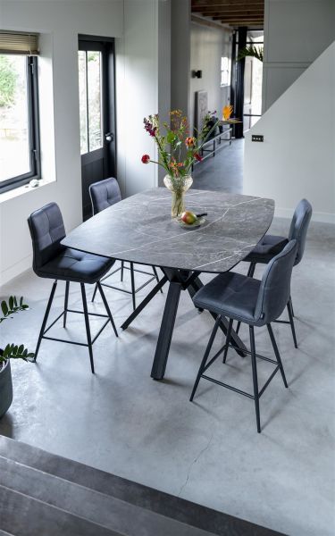 De Milva barstoel heeft een zwart frame en een gestoffeerd zitvlak wat de stoel een modern karakter geeft. Bij Henders en Hazel kun je de barstoel geheel naar eigen wens samenstellen zodat deze binnen iedere interieurstijl past. Je hebt de optie om een greep aan de rugleuning toe te voegen en het artikel is leverbaar in verschillende kleuren. Door verschillende kleuren met elkaar te combineren kun je een speels effect creëren rondom de eettafel. Verder is de Milva barstoel 101 cm hoog en voorzien van een draaisysteem. Dankzij het gevormde zitvlak en de rugleuning is de barstoel bovendien zeer comfortabel.