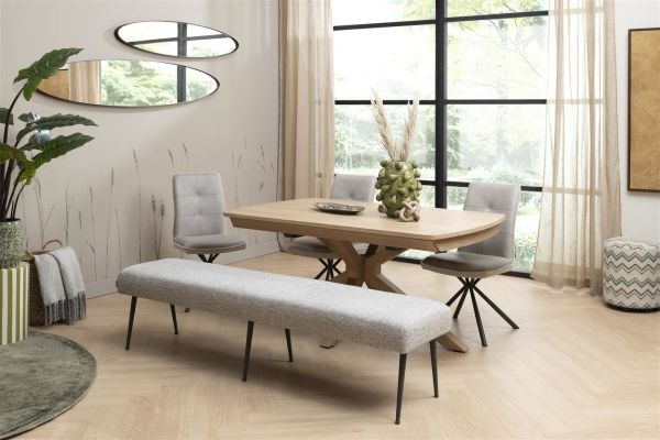 Deze variant van de populaire eetkamerstoel Milva is uitgerust met een grafietkleurig metalen onderstel en bekleed met een unieke combinatie van stoffen. De voorkant van de stoel is uitgevoerd in de lichtgrijze stof Pala (met stoere lederlook), terwijl de achterkant is afgewerkt met de grijze stof Luton. Luton is een zachte, tweed-achtige stof die de stoel een warme en gezellige uitstraling geeft. Handig is ook de handgreep op de rugleuning, waarmee de stoel gemakkelijk te verplaatsen is. Stoel Milva is ook verkrijgbaar in andere uitvoeringen.