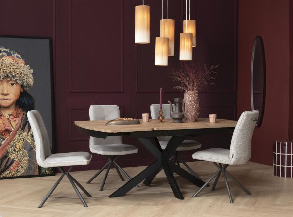 Deze moderne eetkamerstoel Milva uit de Henders & Hazel-collectie heeft een modern onderstel – een trendy spinpoot – in de kleur grafiet. Wat betreft de bekleding heb je verschillende opties: volledig in stof, volledig in (kunst)leer of een combinatie van beide, met een keuze uit verschillende kleuren.
