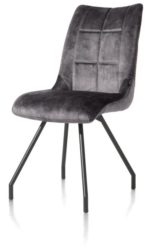 Eetkamerstoel Mischa heeft een stijlvol eigentijds design. Deze comfortabale stoel komt binnen verschillende woonstijlen goed tot zijn recht. Mischa is met verschillende frames en in verschillende kleuren leverbaar. De zitting en rugleuning zijn bekleed met de vleoursachtige stof Karese in de kleur antraciet. Dankzij deze stof heeft de stoel een warme, luxe uitstraling. De stoelpoten zijn van zwart metaal.