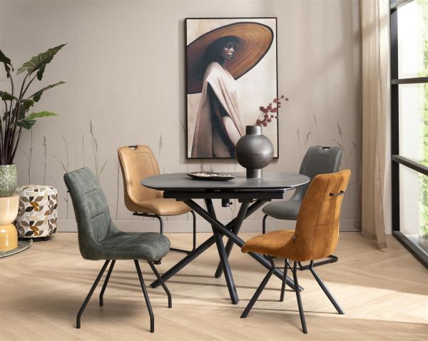 Mischa, eetkamerstoel – 4-poots + greep – stof karese