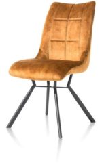 Een zachte, luxe stof, gecombineerd met een modern onderstel. Eetkamerstoel Mischa mag gezien worden. De stoel is bekleed met de stof Karese in de kleur oker. Karese is een warme stof met de uitstraling van velours. De stof is bovendien onderhoudsvriendelijk. De stoelpoten hebben een modern design en zijn gemaakt van zwart metaal. Mischa is in verschillende kleuren en met verschillende frames leverbaar. De verschillende kleuren zijn ook goed onderling met elkaar te combineren. Ontdek ook de bijpassende barstoel!