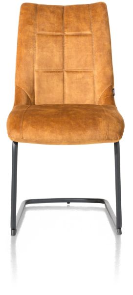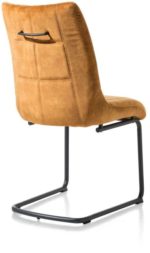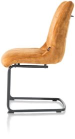 Eetkamerstoel Mischa heeft een eigentijds design. Het zwart metalen swingframe en de veloursachtige stof Karese zorgen voor een mooi contrast van stoer en luxe. Deze variant van Mischa is bekleed in de kleur oker, waardoor de stoel een warme knusse uitstraling heeft. Mischa is in meerdere kleuren en varianten leverbaar. Al deze eetkamerstoelen zijn ook goed met elkaar te combineren.