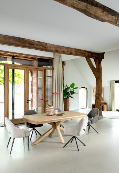 Deze stoel Nikolas uit de Henders & Hazel collectie heeft een speels, open design dat over heel de stoel doorloopt. De stoel is bekleed met stof Enzo, een chenillestof met verschillende kleurtinten die mooi door elkaar geweven zijn. Deze versie is uitgevoerd in kleur grijs, maar er zijn ook nog 3 andere zachte kleurtinten verkrijgbaar! Deze versie van de stoel is uitgevoerd als draaibare versie met automatische terugdraaifunctie, maar er is ook een versie met 4 vaste poten in de kleur grafiet.