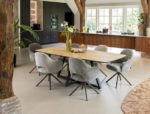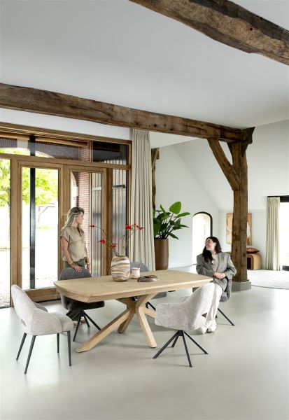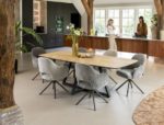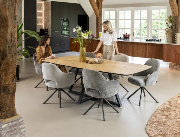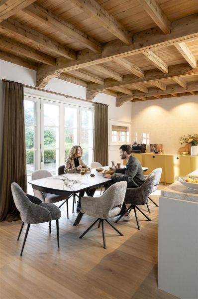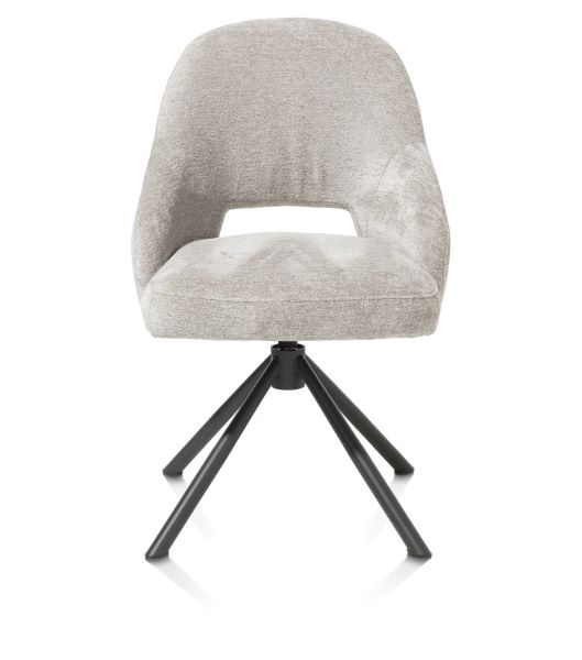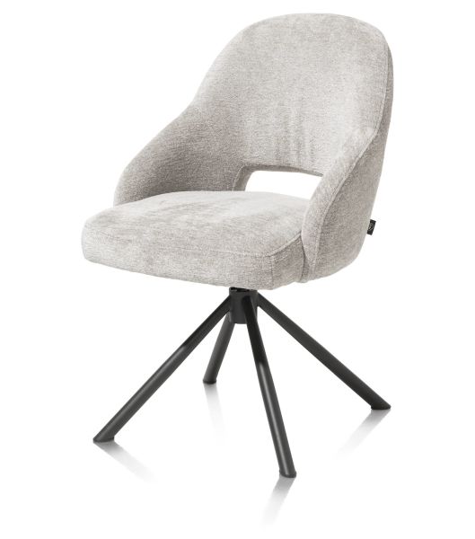 Deze stoel Nikolas uit de Henders & Hazel collectie heeft een speels, open design dat over heel de stoel doorloopt. De stoel is bekleed met stof Enzo, een chenillestof met verschillende kleurtinten die mooi door elkaar geweven zijn. Deze versie is uitgevoerd in kleur kiezel, maar er zijn ook nog 3 andere zachte kleurtinten verkrijgbaar! Deze versie van de stoel is uitgevoerd als draaibare versie met automatische terugdraaifunctie, maar er is ook een versie met 4 vaste poten in de kleur grafiet.