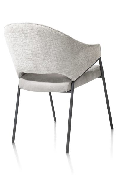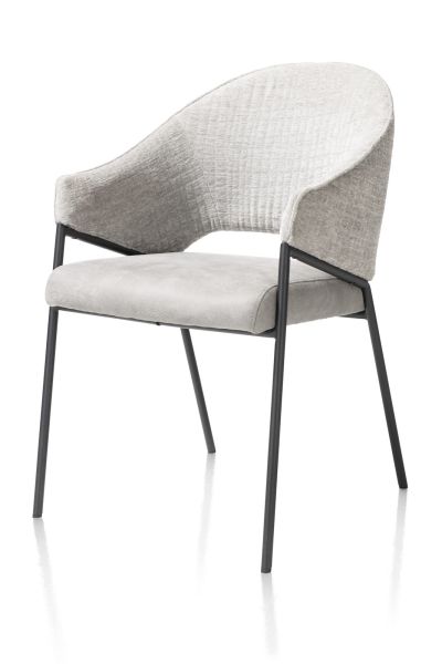 Armstoel NOLAN in antraciet geeft je eethoek een industriële en tegelijk stijlvolle touch. De stoel is prachtig bekleed met microleder Taurus op de zitting en de luxe stof Wave op de rug. Wave is een chenille stof van 100% polyester met een duidelijk zichtbaar ruitpatroon. De stof is heerlijk zacht en heeft een mooie glans. Armstoel NOLAN heeft een zwart metalen onderstel. Je shopt NOLAN ook in crèmekleur, antraciet en olijf. Combineer erop los voor een speels effect!