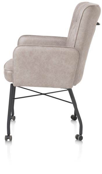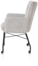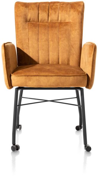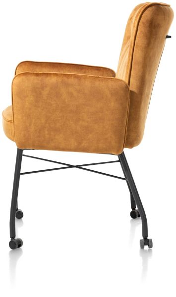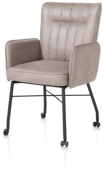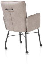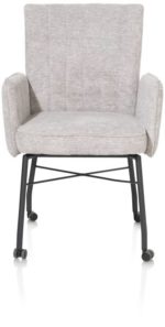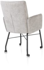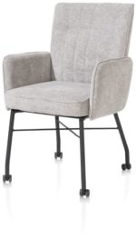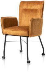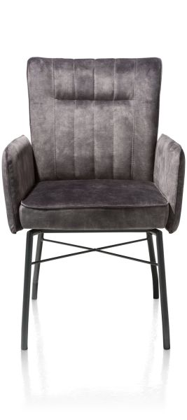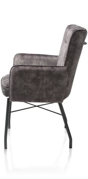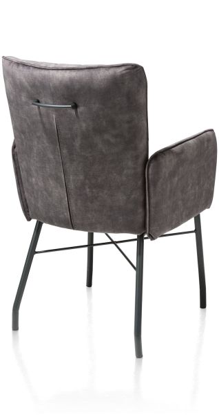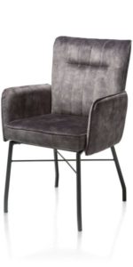 Hij zit heerlijk, deze eetkamerstoel Olvi met armleuningen. De stoel heeft een mooi eigentijds design met een vleugje retro dankzij de stiknaden op de rugleuning. Het fijne aan Olvi is dat je hem volledig naar eigen wens en smaak kunt laten stofferen. Hierbij heb je de keuze uit stof of leer. Het zwart metalen frame en stoelpoten geven de stoel een moderne uitstraling. Op de rugleuning is een handige greep aangebracht.