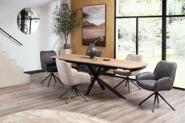 Riley, armstoel 4-poots grafiet frame met relaxsysteem – draaibaar + pocket – stof Taurus