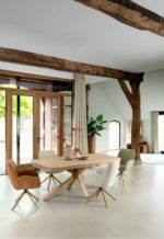 Riley, armstoel 4-poots naturel eiken – draaibaar + pocket – stof Cadiz