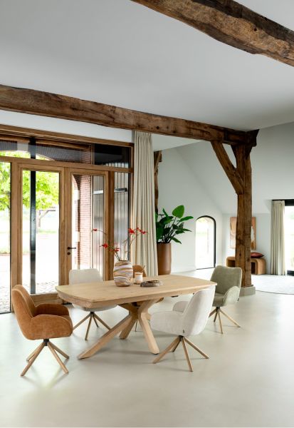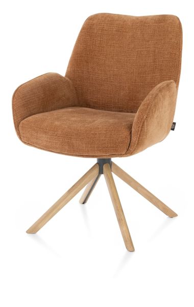 Ontdek het ultieme comfort van armstoel RILEY! Met zijn mooie ronde vormen, relaxsysteem en pocketvering biedt RILEY een ongekend zitgenot. Deze 360 graden draaibare stoel, uitgerust met een handige terugdraaifunctie, is bekleed met de stijlvolle stof Cadiz in de kleur koper. Voor een unieke uitstraling kun je ook kiezen uit andere kleuren en een speelse mix rond je eettafel creëren. Het naturel eiken frame kan worden aangepast naar grafiet, zodat RILEY perfect past bij jouw interieur.