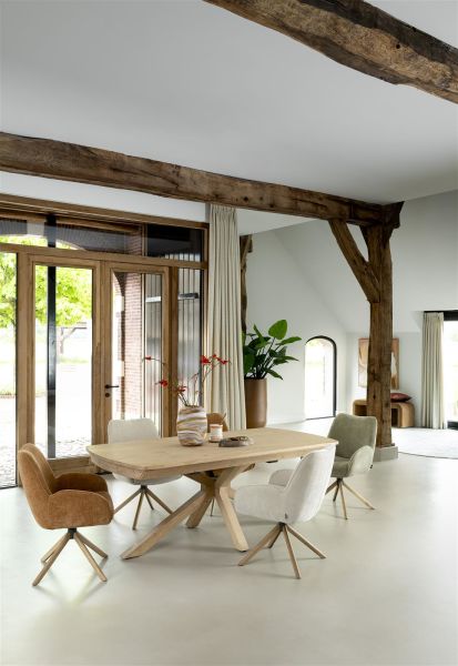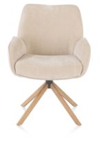Hou je van lekker lang tafelen? Maak kennis met de 360 graden draaibare armstoel RILEY! Met een handige terugdraaifunctie en een ingebouwd relaxsysteem is RILEY dé stoel voor ultiem gemak. De ronde vormen en het zitcomfort dankzij pocketvering maken deze stoel een echte favoriet. RILEY is bekleed met stof Cadiz in crèmekleur, maar ook beschikbaar in koper en olijf. Het naturel eiken frame kan desgewenst worden vervangen door grafiet, zodat hij perfect past in jouw interieur!
