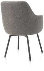 Deze draaibare armstoel Rocco heeft een lekker brede kuip en heeft 4 poten in de kleur grafiet. Daarnaast heb je ook de keuze uit een frame met lichte eikenhouten poten. De stoel is eveneens verkrijgbaar als draaibare eetkamerstoel zonder armleuningen. De zithoogte van deze stoel is 50cm en de stoel is uitgevoerd in de trendy lusjesstof (bouclé) Brioni. De stoel is verkrijgbaar in twee kleuren. Hier zien we de versie in de kleur lever.