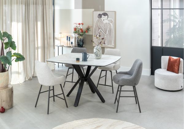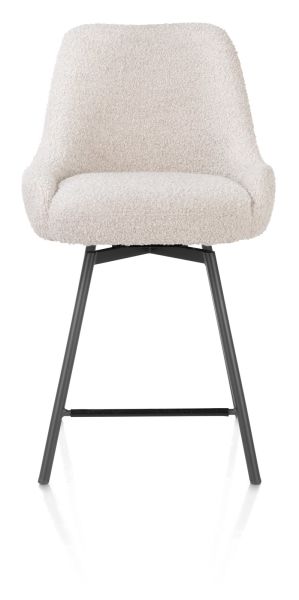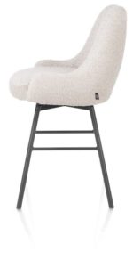 Deze draaibare barstoel Rocco heeft een lekker brede kuip en staat op 4 metalen poten in de kleur grafiet. Rocco is uitgevoerd in de trendy lusjesstof (bouclé) Brioni, verkrijgbaar in twee kleuren. Ga je voor deze crèmekleur variant of kies je voor de leverkleurige uitvoering? De terugdraaifunctie maakt deze barstoel extra praktisch. Rocco is tevens verkrijgbaar als stoel en armstoel, met daarbij zelfs de keuze tussen een grafietkleurig of een eikenhouten frame.