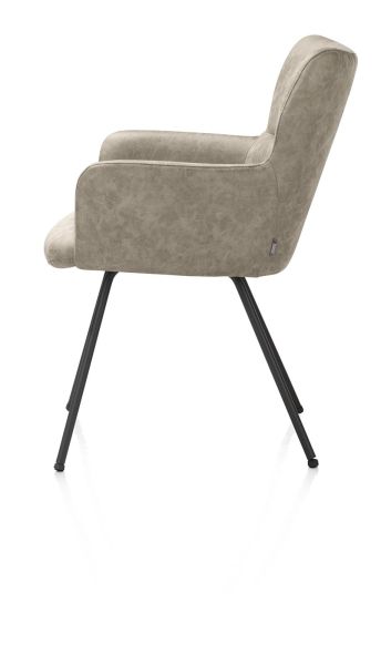 Armstoel SAGE in de kleur beige is een comfortabele en stijlvolle keuze voor elke eethoek. De stoel is bekleed met stof Oregon. De zachte, huiselijke feel en het soepele zitcomfort maken deze armstoel ideaal voor lange avonden aan tafel. Het onderstel met vier ranke poten in rough off black geeft een stoer en modern accent. Armstoel SAGE is verkrijgbaar in verschillende kleuren en afwerkingen; kies wat bij jouw interieur past.