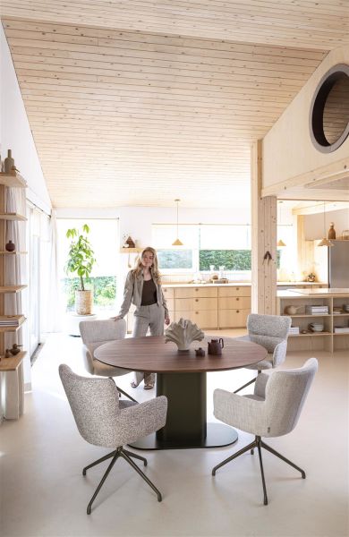 Armstoel SAGE in crèmekleur is een echte sfeermaker voor aan tafel. De zachte bouclé-stof Luton voelt heerlijk comfortabel aan en geeft de stoel een warme, knusse uitstraling. De ruime zitting en afgeronde vormen zorgen voor een ontspannen zitervaring. Dankzij het draaibare onderstel in steelbrown is deze stoel niet alleen mooi, maar ook praktisch. Wil je net even iets anders? Armstoel SAGE is verkrijgbaar in verschillende kleuren en uitvoeringen.