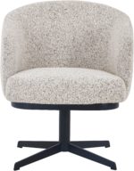 De Kingsford armstoel combineert comfort met een retro tintje. De afgeronde vorm en zachte stoffering in lichte beige tint met subtiele bruinaccenten (Puento 06) zorgen voor een frisse, natuurlijke look die mooi aansluit bij uiteenlopende woonstijlen. Het zwarte metalen onderstel met 360° draaifunctie maakt hem praktisch én veelzijdig. Afmetingen: H81 × B69 × D70 cm.