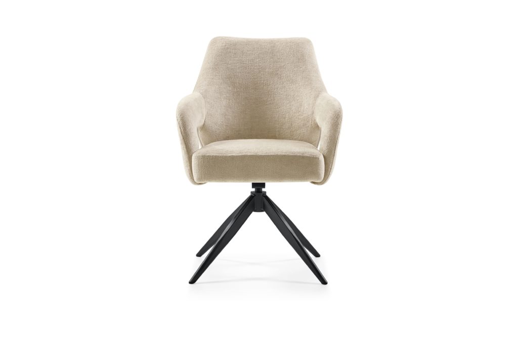 De Rosebery armstoel met open armleuning heeft een strak en tijdloos ontwerp. Uitgevoerd in de stof Perfect Harmony in beige straalt hij rust en verfijning uit. Voorzien van een zwarte metalen poot met terugdraaifunctie voor extra gemak. Past uitstekend in moderne en minimalistische interieurs. Afmetingen: H87 × B58 × D64 cm.