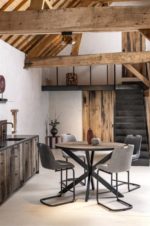 Het is heerlijk tafelen aan deze moderne bartafel uit de Avalox-collectie. Het tafelblad is uitgevoerd in Primo Laminato, een sterk en onderhoudsvriendelijk materiaal met de uitstraling van hout, en is verkrijgbaar in twee houttinten: driftwood en oak natural vintage. Voor het onderstel heb je drie opties. De zwarte metalen V-poten geven de tafel een robuust karakter, terwijl de vier losse poten het eigentijdse design extra kracht bijzetten. En dan is er nog een versie met een centrale poot. De bartafel is beschikbaar in vier verschillende afmetingen. Deze uitvoering meet 140 x 98 cm.