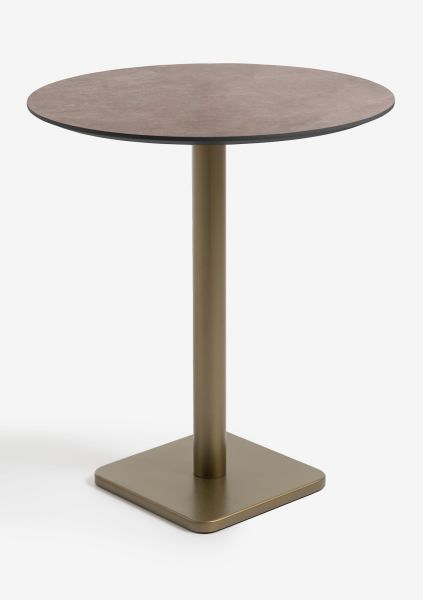 Klein (eet-)hoekje inrichten? COCOmaison heeft dé oplossing voor je! In onze Brest-serie vind je namelijk heel veel leuke bistro- en bartafeltjes. De tafels hebben allemaal een metalen poot, die verkrijgbaar is in goud of zwart en een blad van eikenhout, steen of marmer. Je kunt daarnaast telkens kiezen uit een ronde, vierkant of rechthoekige variant. Door al die verschillende uitvoeringen kun je uit maar liefst verschillende 72 tafeltjes kiezen! Superhandig én stijlvol dus! Dit is de ronde bartafel met een diameter van 80 cm, een goudkleurige poot en een blad van steen in kleur roest.