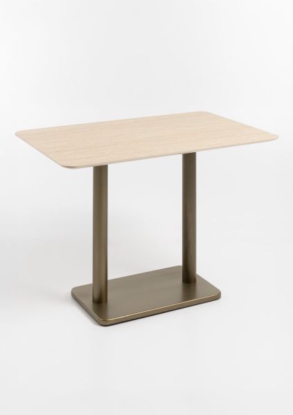 Klein (eet-)hoekje inrichten? COCOmaison heeft dé oplossing voor je! In onze Brest-serie vind je namelijk heel veel leuke bistro- en bartafeltjes. De tafels hebben allemaal een metalen poot, die verkrijgbaar is in goud of zwart en een blad van eikenhout, steen of marmer. Je kunt daarnaast telkens kiezen uit een ronde, vierkant of rechthoekige variant. Door al die verschillende uitvoeringen kun je uit maar liefst verschillende 72 tafeltjes kiezen! Superhandig én stijlvol dus! Dit is de rechthoekige bartafel met een afmeting van 120 x 75 cm, een goudkleurige poot en een travertin look hpl blad.