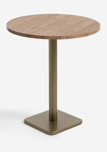 Klein (eet-)hoekje inrichten? COCOmaison heeft dé oplossing voor je! In onze Brest-serie vind je namelijk heel veel leuke bistro- en bartafeltjes. De tafels hebben allemaal een metalen poot, die verkrijgbaar is in goud of zwart en een blad van eikenhout, steen of marmer. Je kunt daarnaast telkens kiezen uit een ronde, vierkant of rechthoekige variant. Door al die verschillende uitvoeringen kun je uit maar liefst verschillende 72 tafeltjes kiezen! Superhandig én stijlvol dus! Dit is de ronde bartafel met een diameter van 80 cm, een goudkleurige poot en een eikenhouten blad.