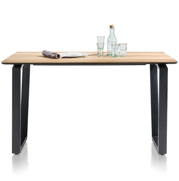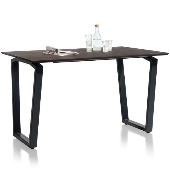 Deze moderne bartafel is afkomstig uit de Livada collectie en is 92 cm hoog en in verschillende afmetingen leverbaar. Deze tafel meet 160 x 100 cm. Opvallend is de tafelpoot in V-vorm. Deze is van zwart metaal. Er zijn diverse opties om deze bartafel naar eigen wens en smaak aan te passen. Zo is er naast de metalen V-poot ook een V-poot met houtinleg en een spinpoot van metaal. Voor het tafelblad heb je keuze uit 4 verschillende kleuren.
