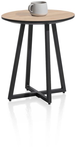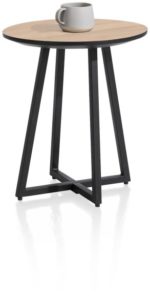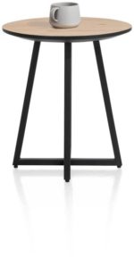 Een bijzettafel met karakter. Deze bijzettafel is uit de Avalon-collectie en heeft een modern design. De vormgeving van de metalen tafelpoten zorgt voor een stoere uitstraling. Het ronde tafelblad is van Primo Laminato in de kleur natural. De tafel is 40×35 cm en verkrijgbaar in vier verschillende kleuren. Tip: combineer verschillende bijzettafels met elkaar en gebruik ze in de plaats van een salontafel.