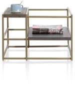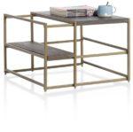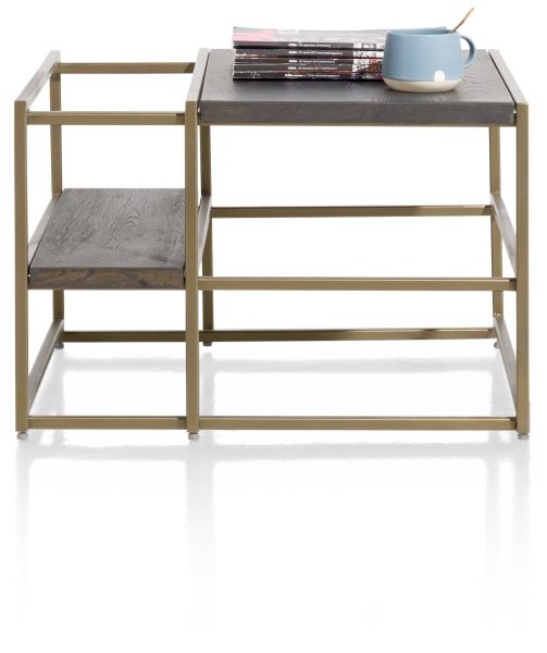 Als je van opvallende items houdt in het interieur, die ook nog eens functioneel zijn, dan is deze bijzettafel uit de City collectie een aanrader. De bijzettafel is 60×60 cm en heeft een bijzonder design. De bladen van de tafel zijn van eikenfineer in de kleur castle antraciet. De metalen onderdelen zijn goudkleurig. Gecombineerd zorgen ze voor een elegante industriële uitstraling.