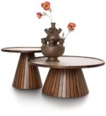 Maak kennis met de Cleo salontafel van COCOmaison – een prachtige toevoeging aan je interieur! Deze stijlvolle tafel combineert een warm bruin houten frame met een elegant hpl travertin blad dat meteen in het oog springt. De poten zijn afgewerkt met subtiele latjes, wat de tafel een speelse en unieke uitstraling geeft. Met zijn 44 cm hoogte en diameter van 60 cm past Cleo perfect bij elke zithoek en is hij prachtig te combineren met de lagere variant voor een gelaagd en dynamisch effect. Een tijdloos meubelstuk met klasse!