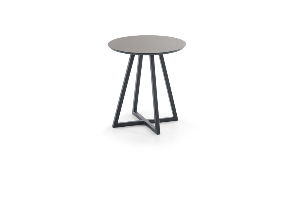 Strak, luxueus en hierdoor een modieus sieraad in een moderne woonkamer. Het strakke onderstel in zwart in combinatie met het scherp verjongde Fenix blad geven deze tafel een design-uitstraling. Zoals getoond: bijzettafel met zwarte metalen frame en blad in fenix piombo doha. Afmetingen: H44 x ø40 cm.